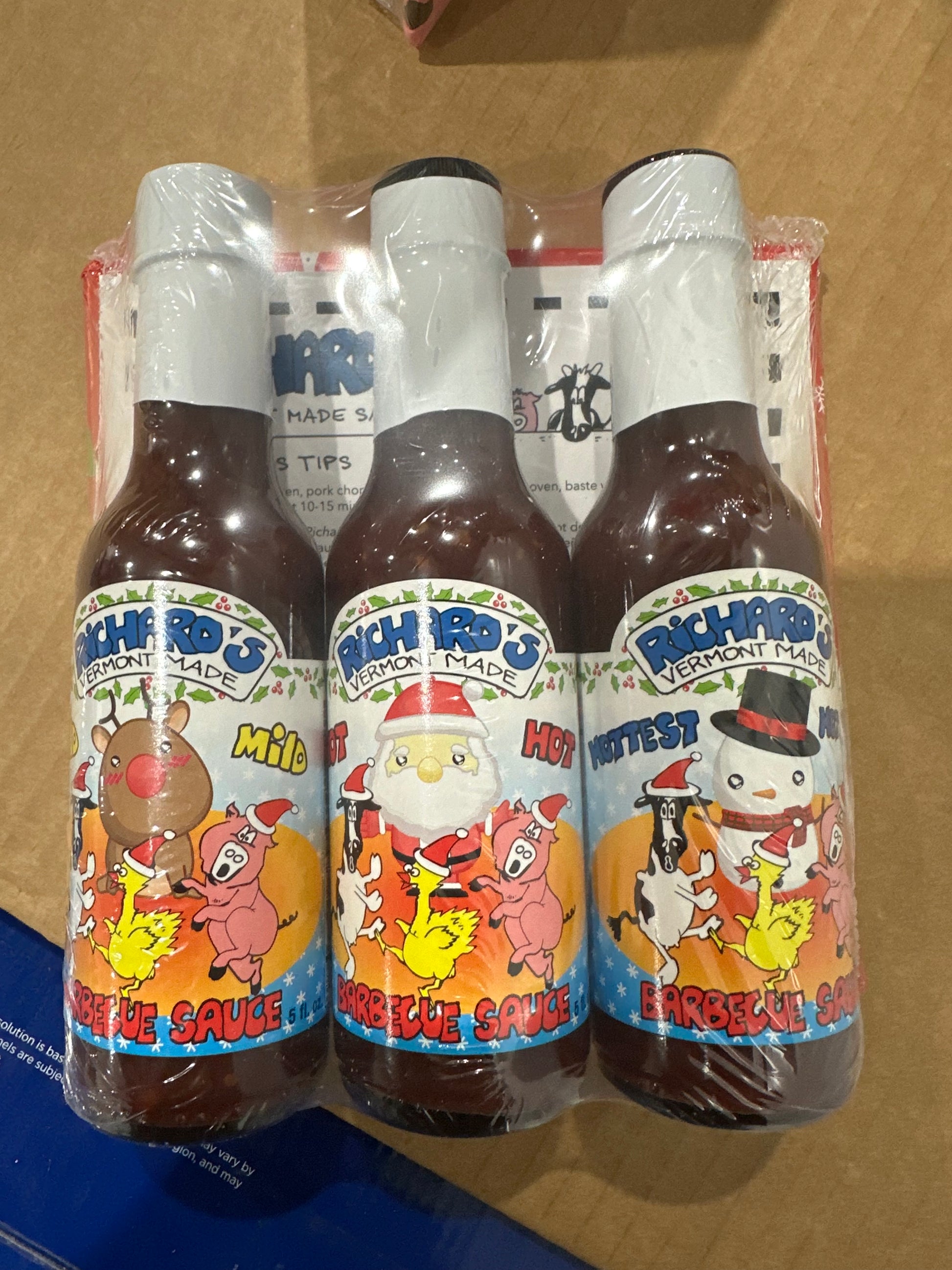 Three 5oz bottles of Richard's Variety 3-Packs (Chicken Marinade, Game Sauce, & Moose Hot Sauce)